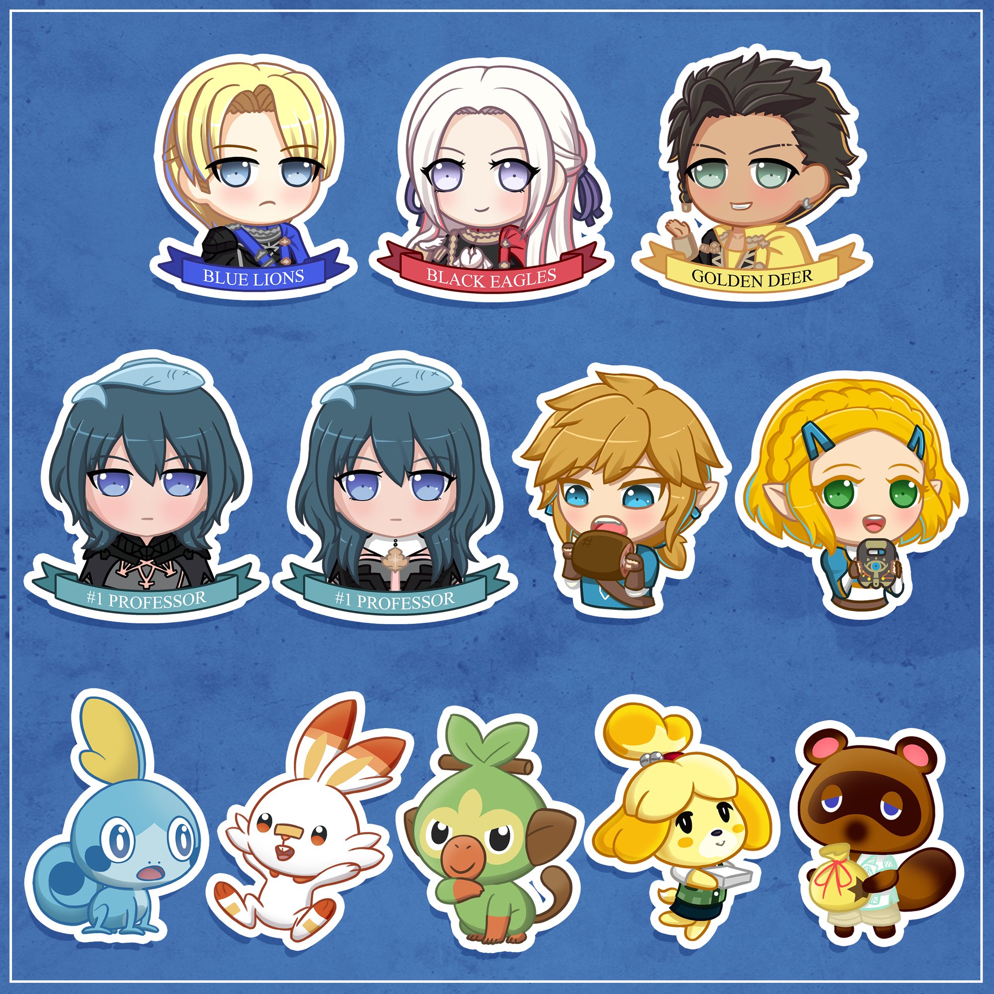 Weatherproof vinyl stickers of popular Nintendo characters! - Legend of Zelda - Fire Emblem 3 Houses - Pokemon - Animal Crossing